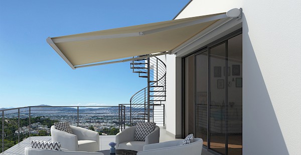 - Rundumschutz: Markisentuch und Technik bleiben sauber und geschützt